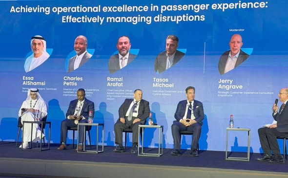 During a panel discussion titled “Enhancing the Passenger Experience,” Arafat highlighted the latest practices adopted at King Hussein International Airport in Aqaba, in line with the Royal Vision for the Aqaba Special Economic Zone and with the support of the Aqaba Development Corporation. These efforts aim to elevate service quality, improve the passenger experience, and enhance the efficiency of operational processes through the adoption of innovation and digital transformation, which facilitate passenger flow and provide smoother, more effective services.